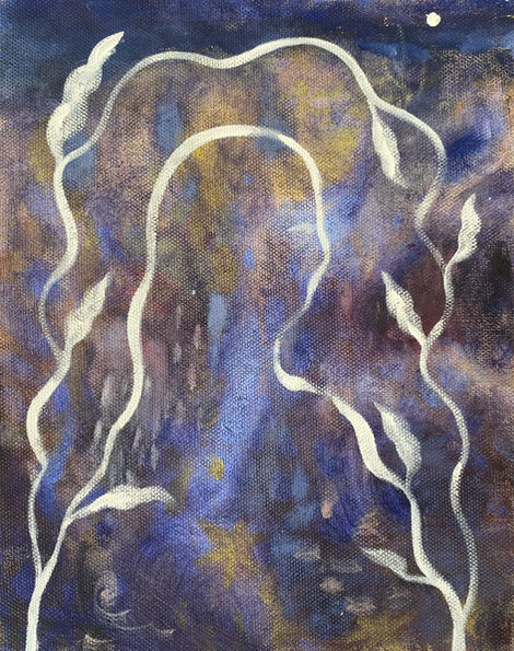 Through the vines at midnight, 2025, Oil on canvas, 20 x 25 cm